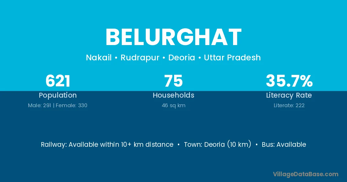 Deoria (10 km) is the nearest town to Belurghat village for major economic activities and is located approximately 10 km away.