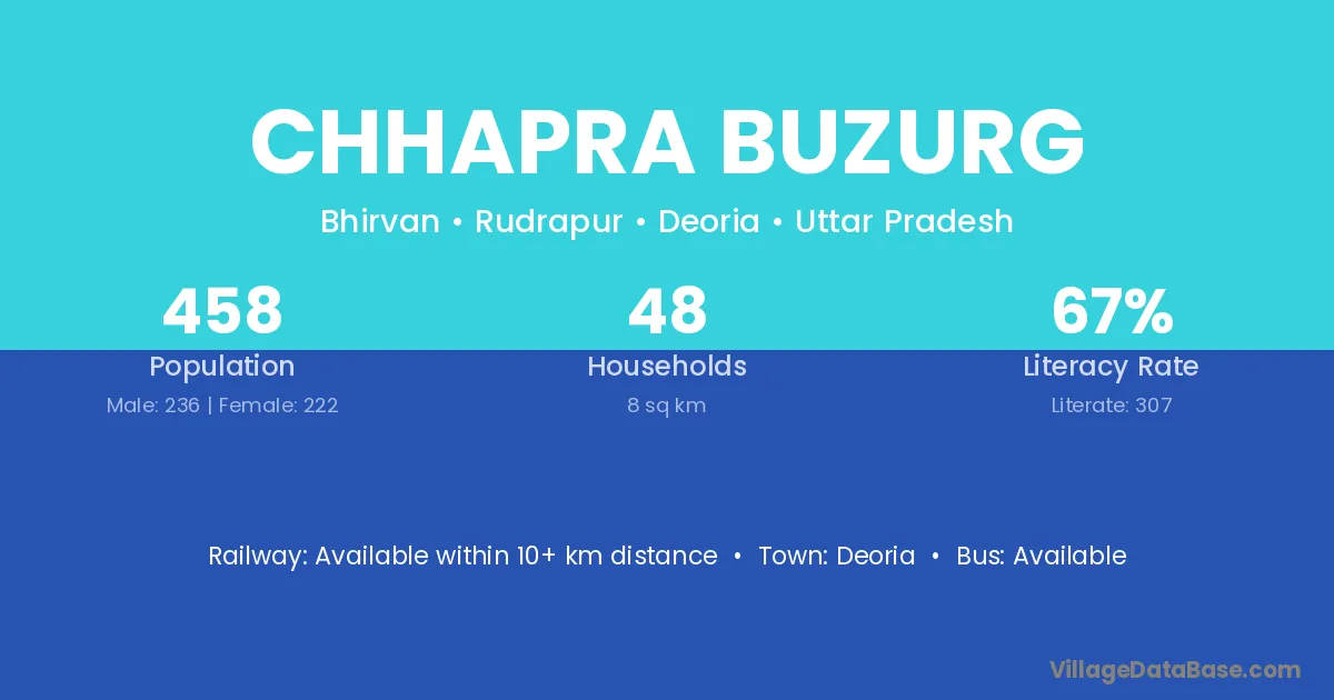 Deoria is the nearest town to Chhapra Buzurg village for major economic activities