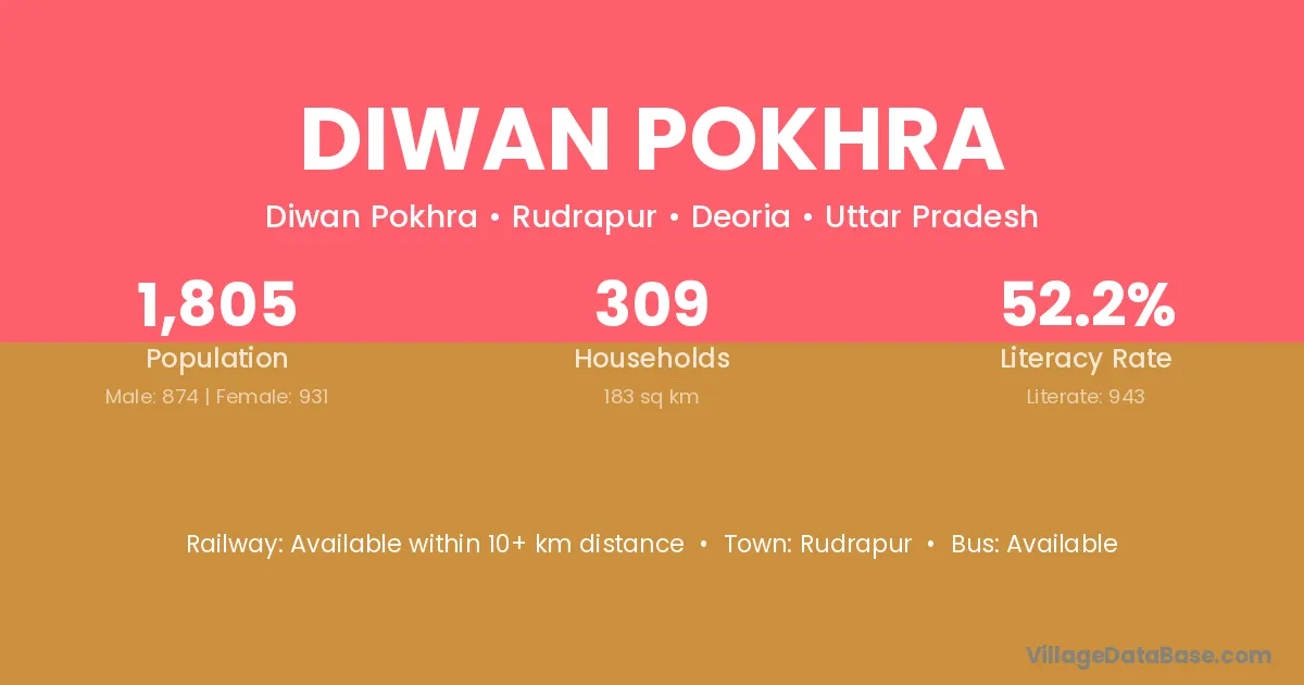 Rudrapur is the nearest town to Diwan Pokhra village for major economic activities