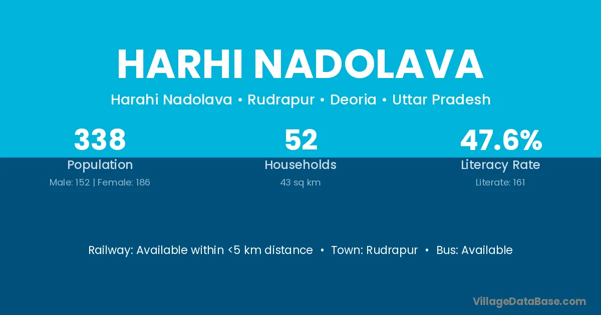 Rudrapur is the nearest town to Harhi Nadolava village for major economic activities