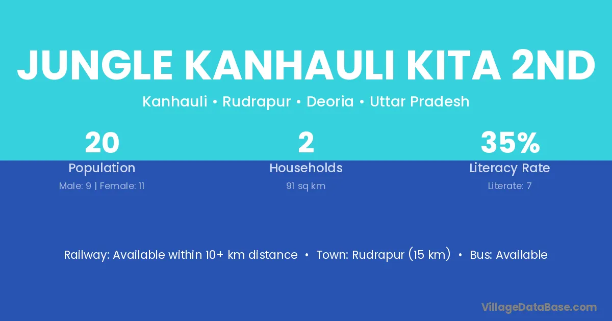 Rudrapur (15 km) is the nearest town to Jungle Kanhauli Kita 2nd village for major economic activities and is located approximately 15 km away.
