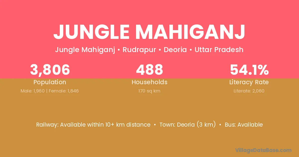 Jungle Mahiganj village has a total population of 3,806 people, of which 1,960 are males and 1,846 are females.