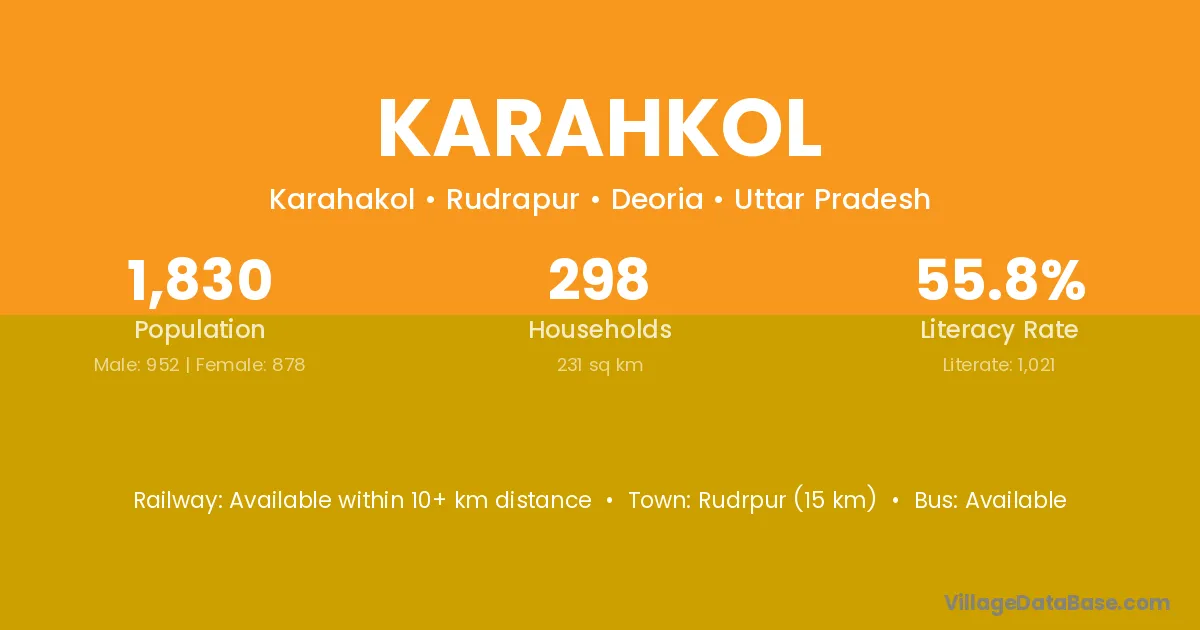 Rudrpur (15 km) is the nearest town to Karahkol village for major economic activities and is located approximately 15 km away.