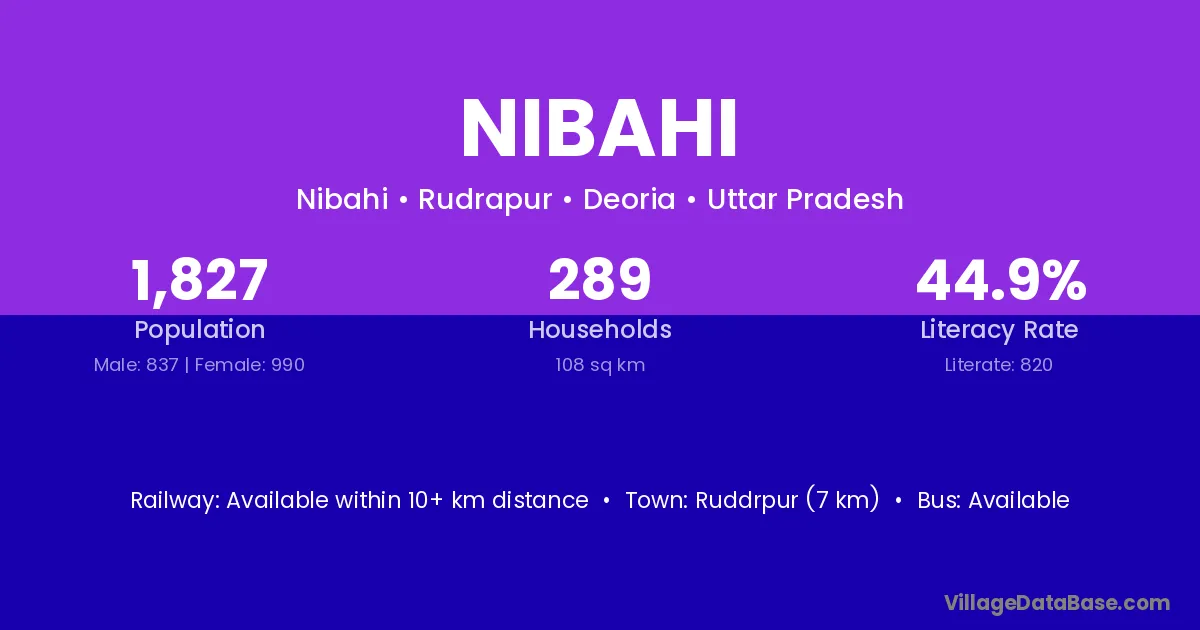 Ruddrpur (7 km) is the nearest town to Nibahi village for major economic activities and is located approximately 7 km away.
