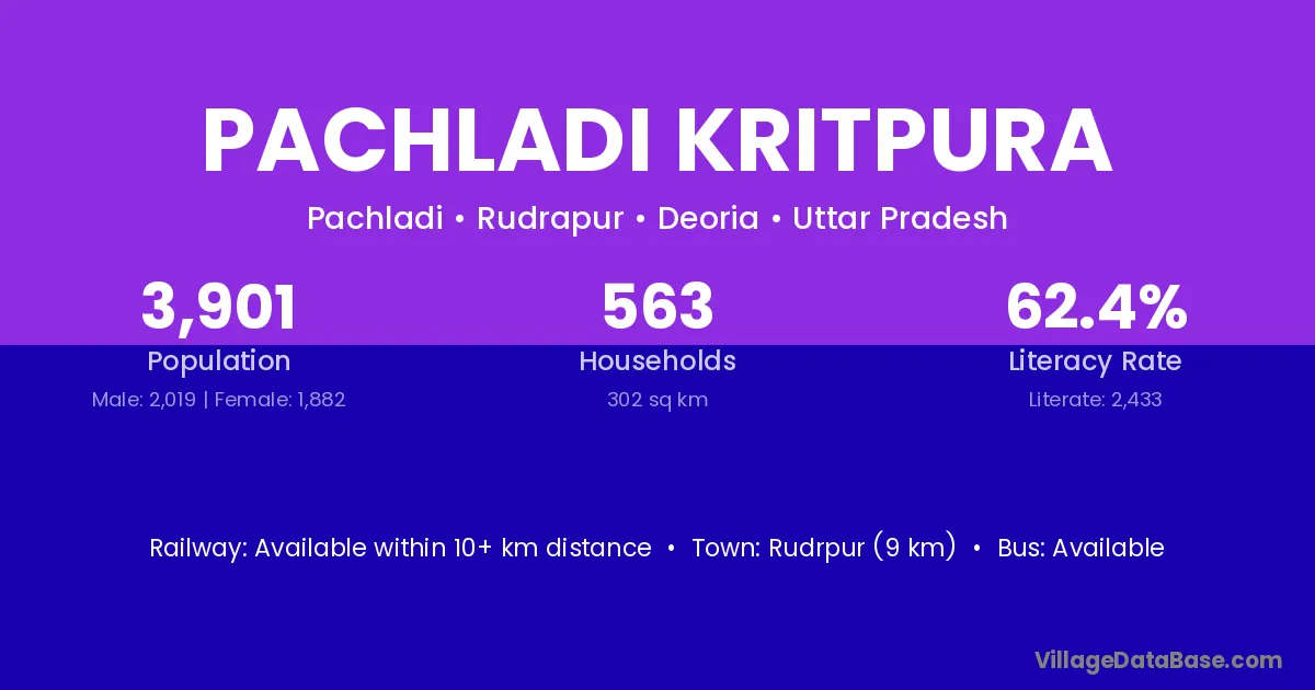 Rudrpur (9 km) is the nearest town to Pachladi Kritpura village for major economic activities and is located approximately 9 km away.