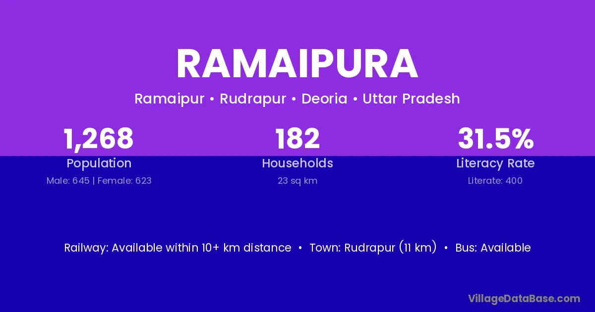 Rudrapur (11 km) is the nearest town to Ramaipura village for major economic activities and is located approximately 11 km away.