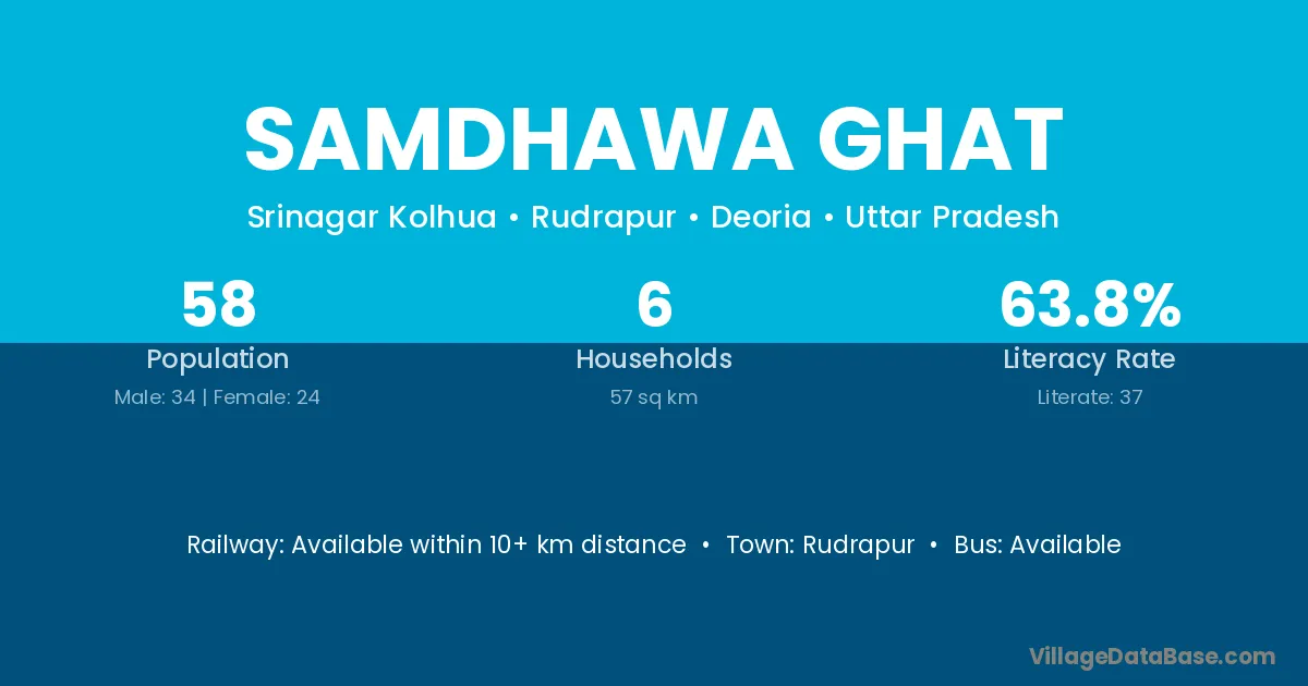 Samdhawa Ghat village has a total population of 58 people, of which 34 are males and 24 are females.