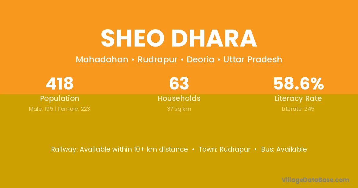 Sheo Dhara village has a total population of 418 people, of which 195 are males and 223 are females.