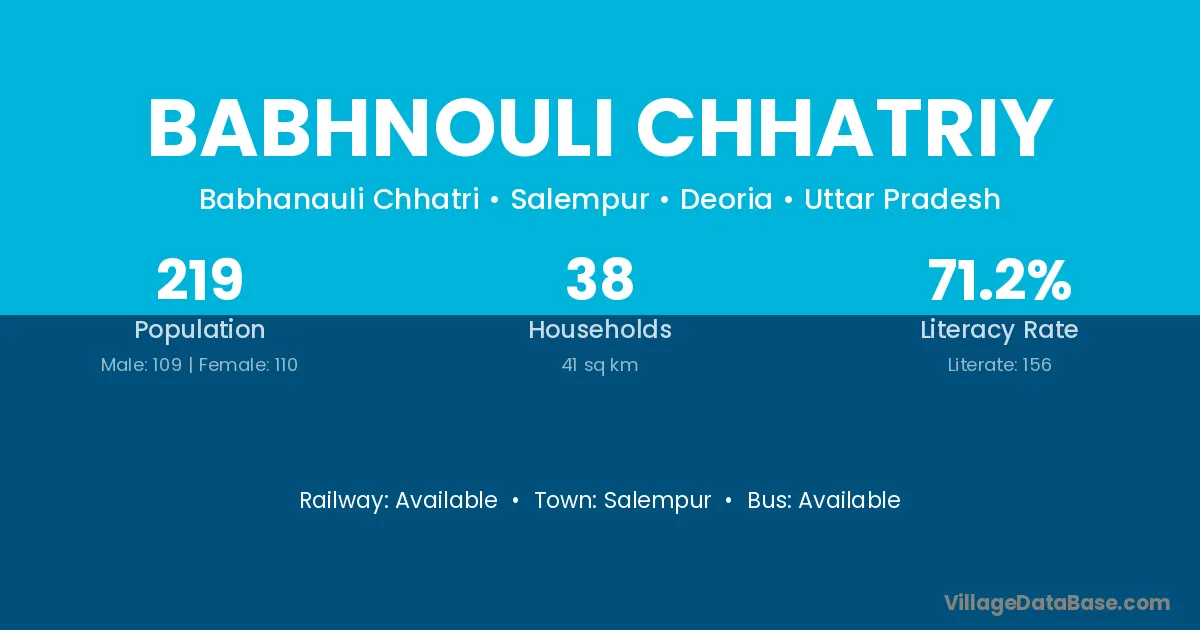 Babhnouli Chhatriy village has a total population of 219 people, of which 109 are males and 110 are females.