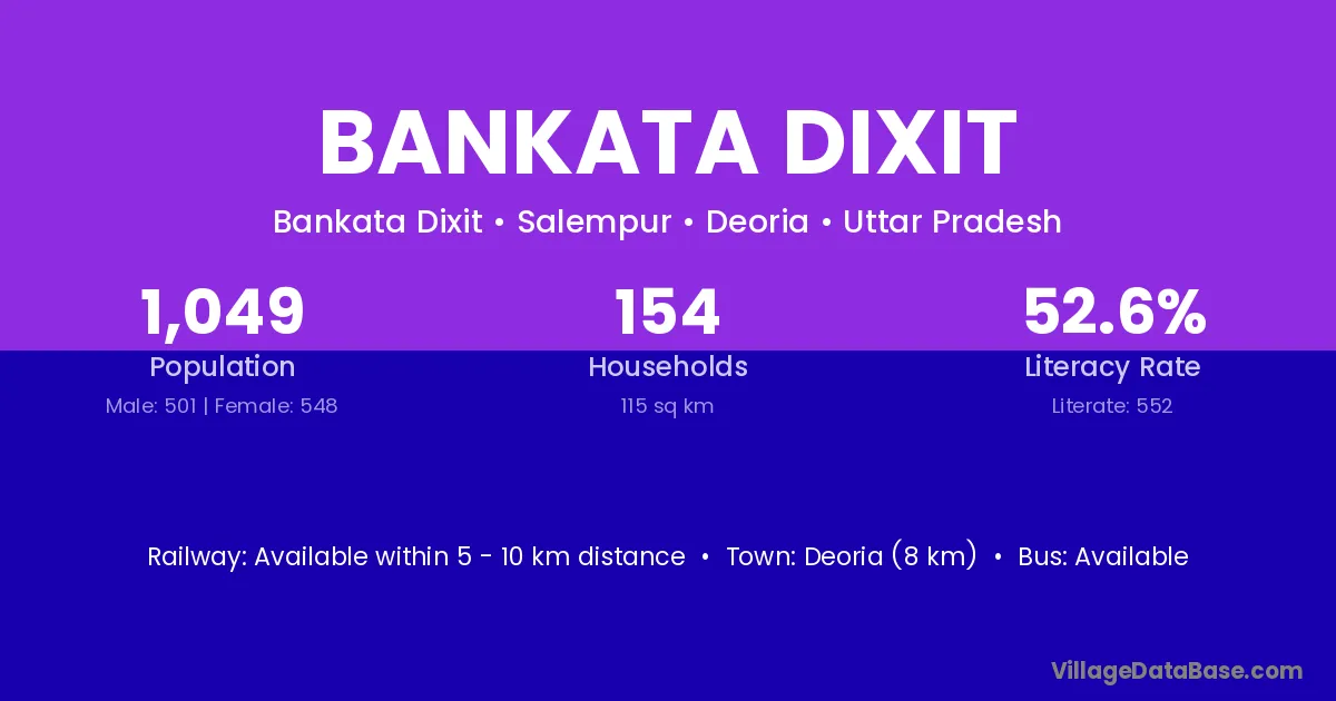 Deoria (8 km) is the nearest town to Bankata Dixit village for major economic activities and is located approximately 8 km away.