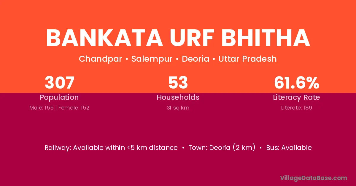 Bankata Urf Bhitha village has a total population of 307 people, of which 155 are males and 152 are females.