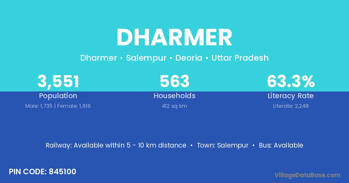 Salempur is the nearest town to Dharmer village for major economic activities