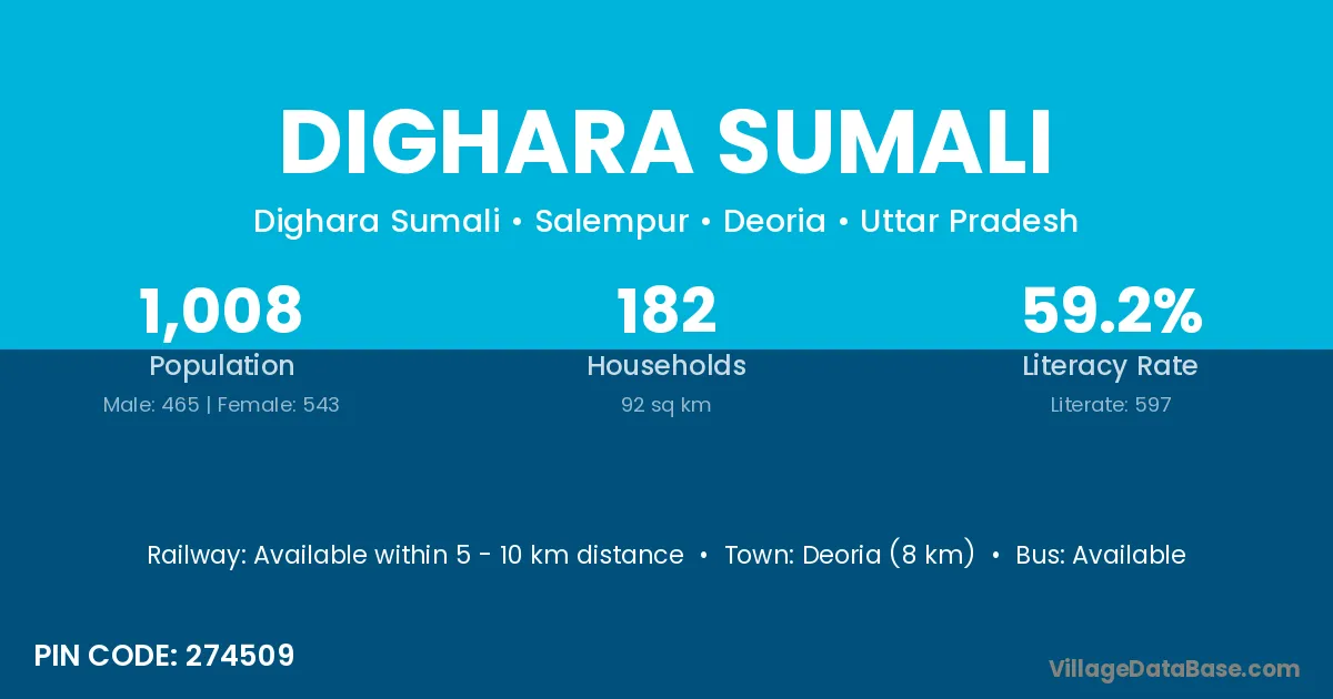 Deoria (8 km) is the nearest town to Dighara Sumali village for major economic activities and is located approximately 8 km away.