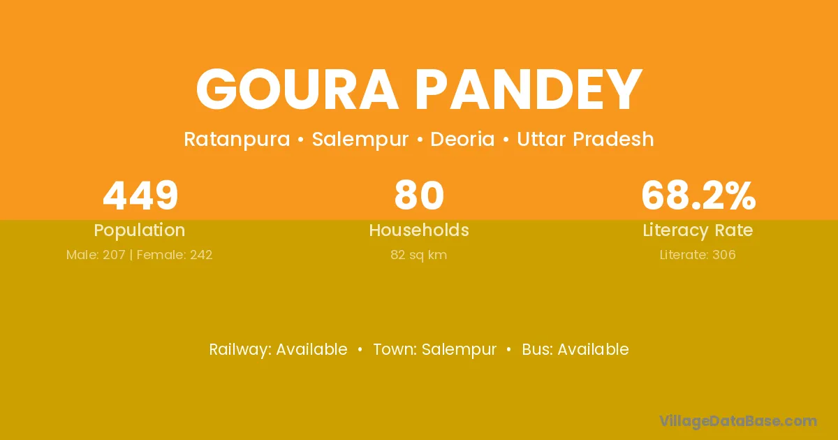 Goura Pandey village has a total population of 449 people, of which 207 are males and 242 are females.