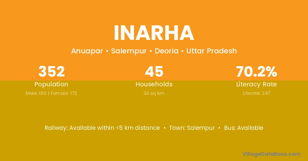 Inarha village has a total population of 352 people, of which 180 are males and 172 are females.