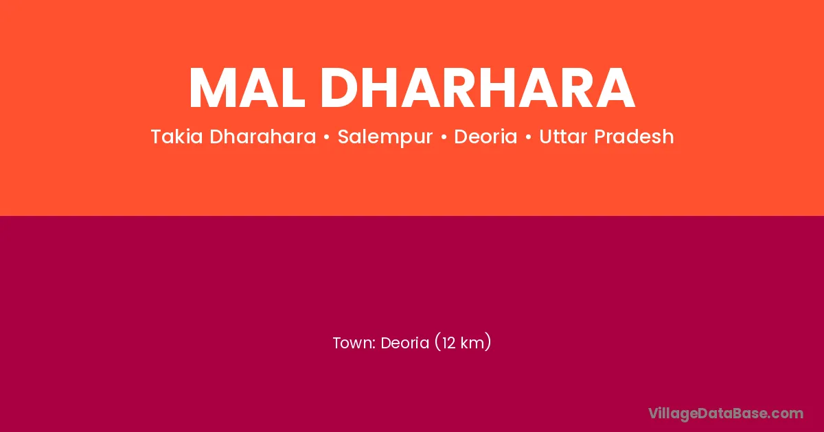 Deoria (12 km) is the nearest town to Mal Dharhara village for major economic activities and is located approximately 12 km away.