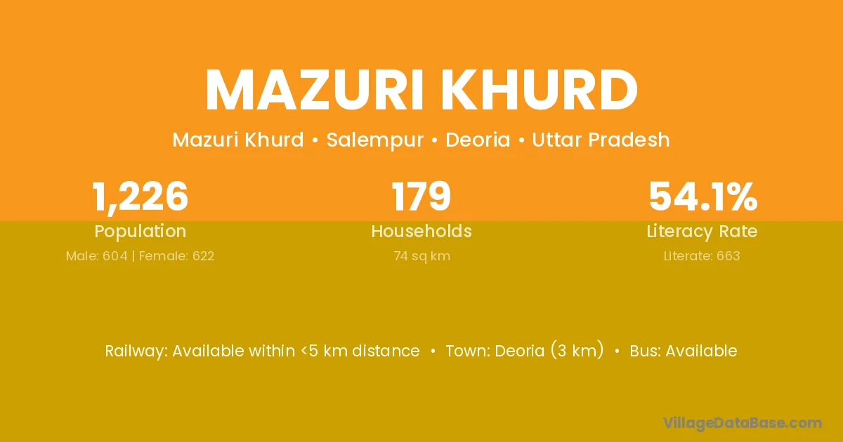 Deoria (3 km) is the nearest town to Mazuri Khurd village for major economic activities and is located approximately 3 km away.