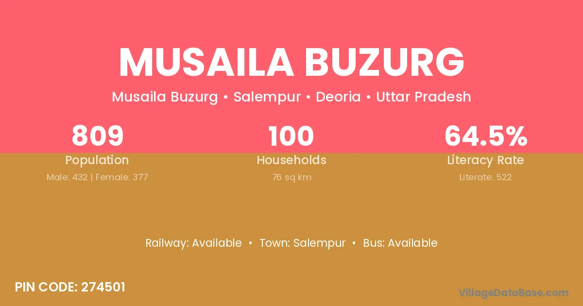 According to Census 2011 information, the village code of Musaila Buzurg village is 274501.