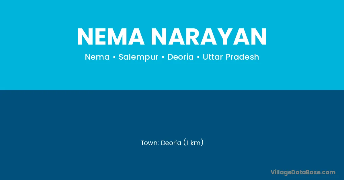 Deoria (1 km) is the nearest town to Nema Narayan village for major economic activities and is located approximately 1 km away.