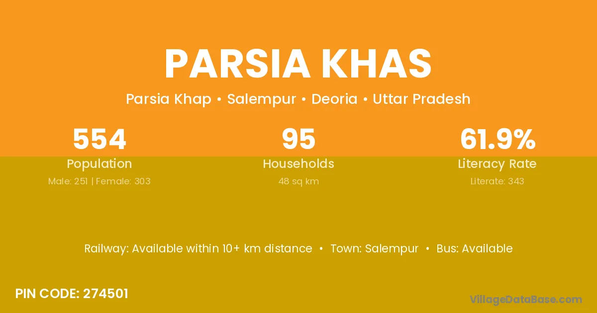 Parsia Khas village has a total population of 554 people, of which 251 are males and 303 are females.