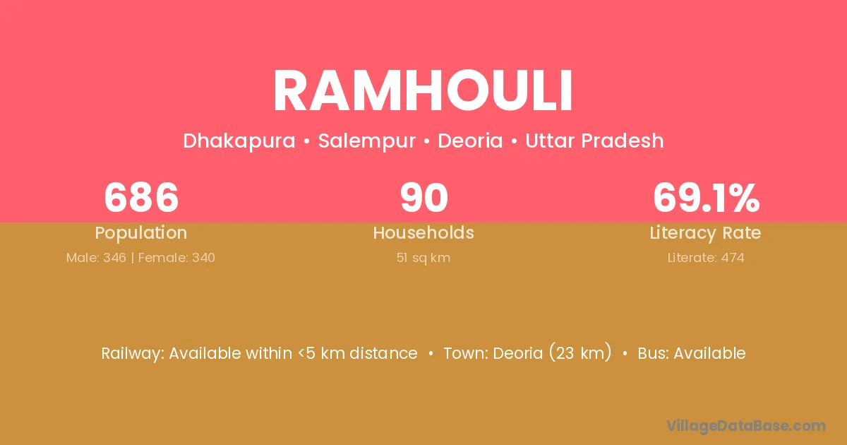 Deoria (23 km) is the nearest town to Ramhouli village for major economic activities and is located approximately 23 km away.