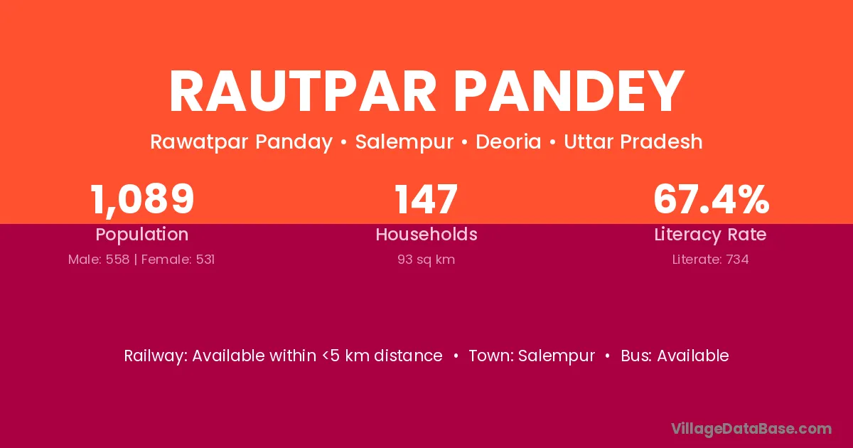 Rautpar Pandey village has a total population of 1,089 people, of which 558 are males and 531 are females.
