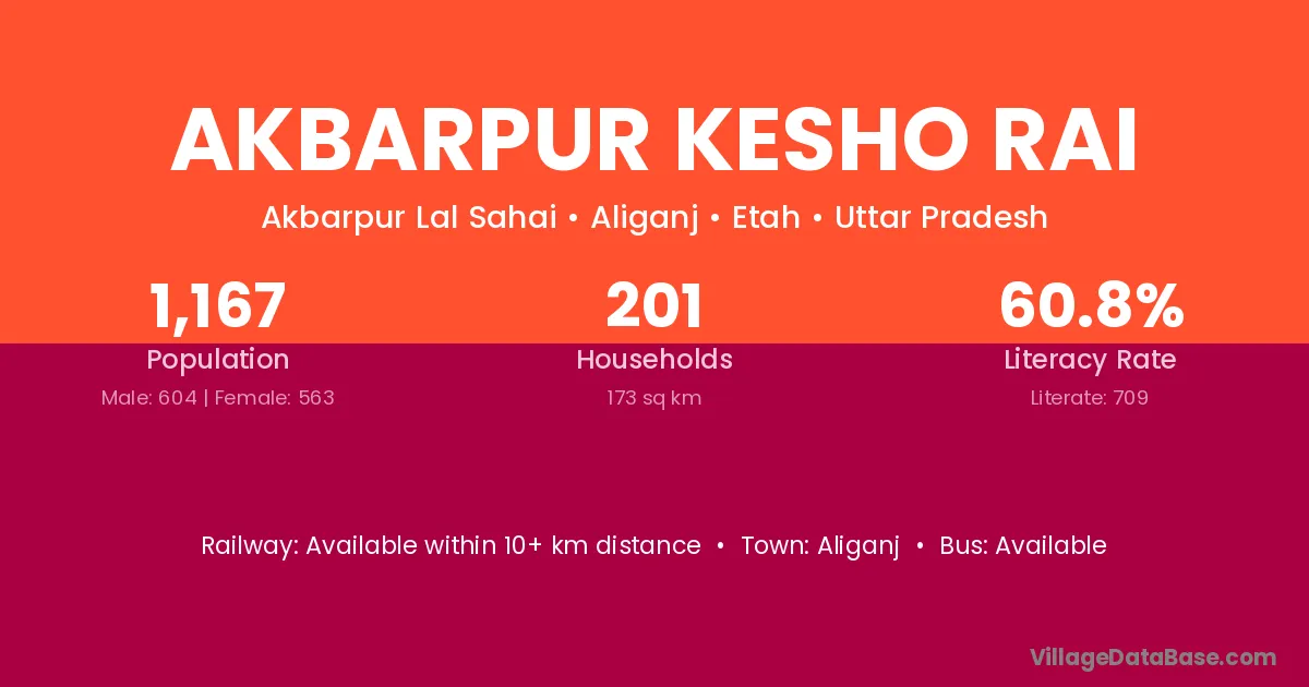 Akbarpur Kesho Rai village has a total population of 1,167 people, of which 604 are males and 563 are females.