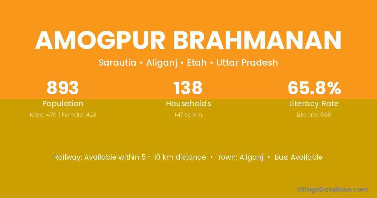Amogpur Brahmanan village has a total population of 893 people, of which 470 are males and 423 are females.