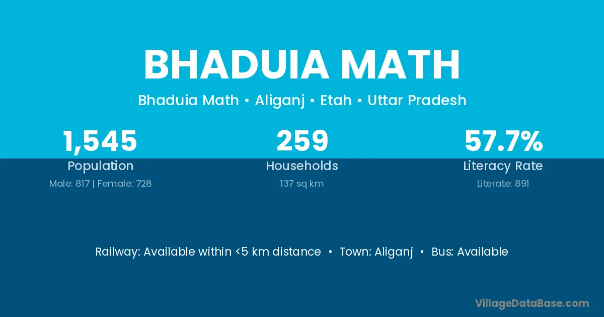 Aliganj is the nearest town to Bhaduia Math village for major economic activities