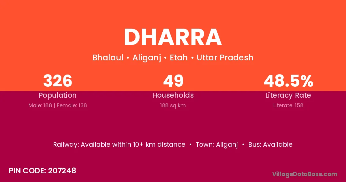 Dharra village has a total population of 326 people, of which 188 are males and 138 are females.