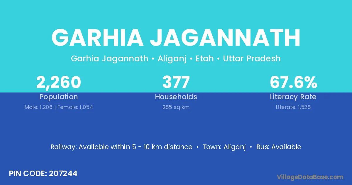 Aliganj is the nearest town to Garhia Jagannath village for major economic activities