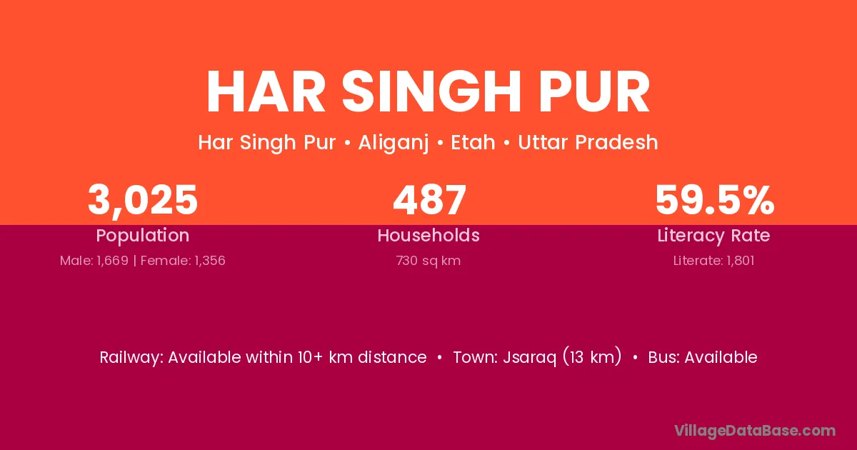 Har Singh Pur village has a total population of 3,025 people, of which 1,669 are males and 1,356 are females.