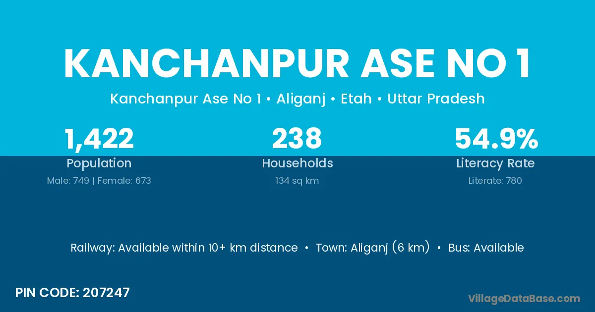 Aliganj (6 km) is the nearest town to Kanchanpur Ase No 1 village for major economic activities and is located approximately 6 km away.