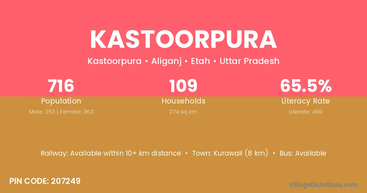 Kastoorpura village has a total population of 716 people, of which 353 are males and 363 are females.