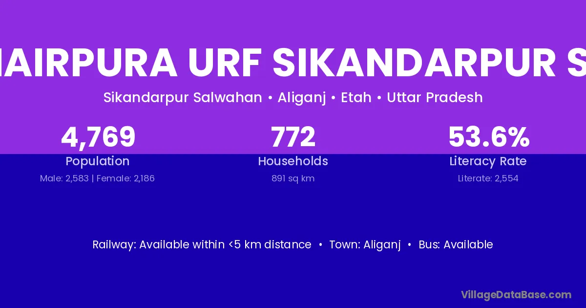Khairpura Urf Sikandarpur Sal village has a total population of 4,769 people, of which 2,583 are males and 2,186 are females.