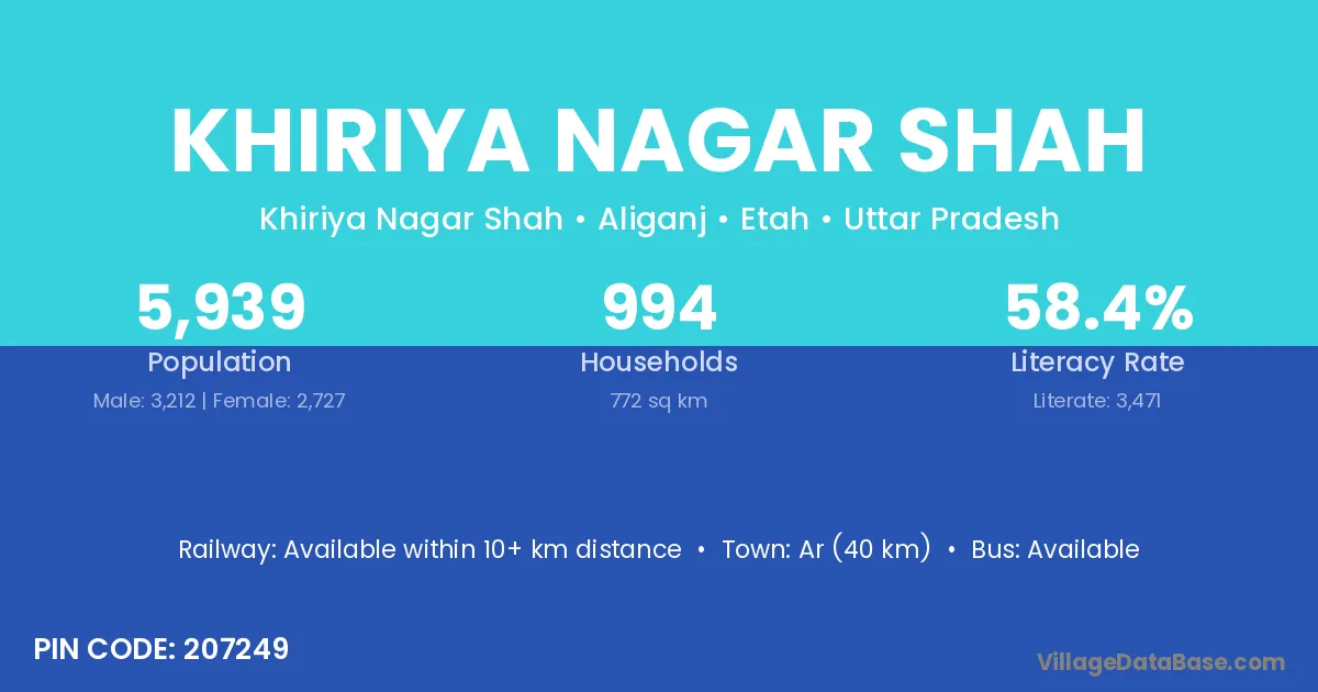 Ar (40 km) is the nearest town to Khiriya Nagar Shah village for major economic activities and is located approximately 40 km away.