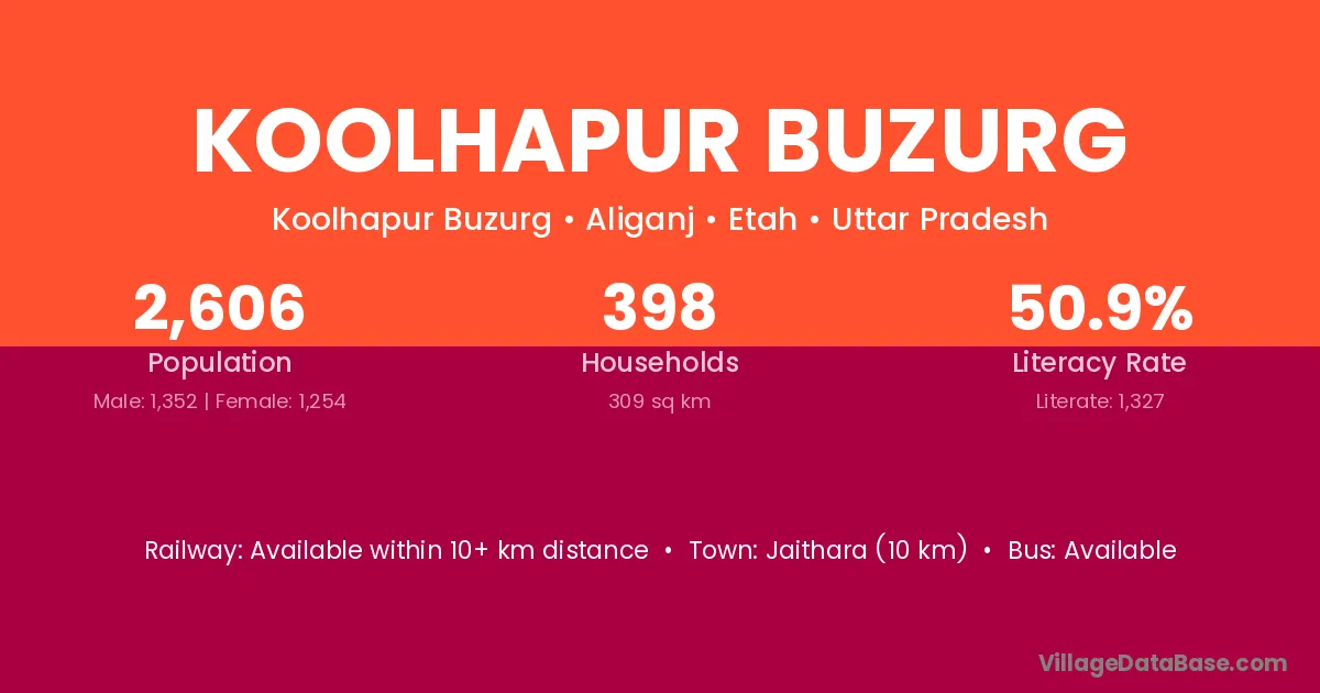 Koolhapur Buzurg village has a total population of 2,606 people, of which 1,352 are males and 1,254 are females.