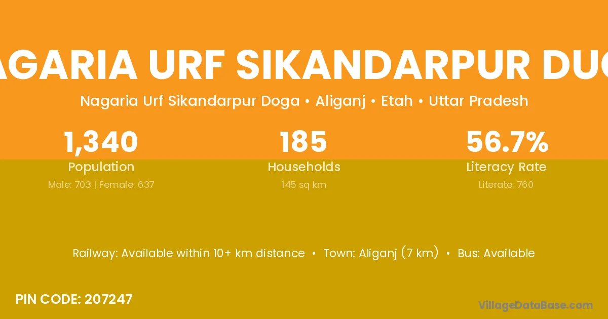 Nagaria Urf Sikandarpur Duga village has a total population of 1,340 people, of which 703 are males and 637 are females.
