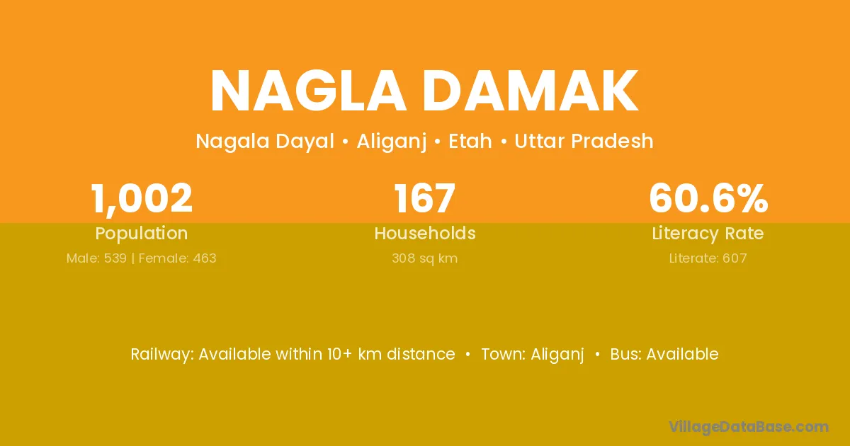 Aliganj is the nearest town to Nagla Damak village for major economic activities