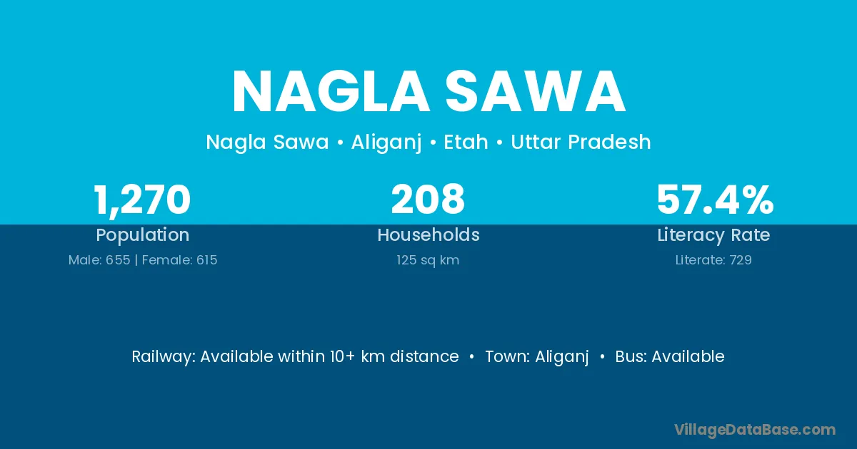 Nagla Sawa village has a total population of 1,270 people, of which 655 are males and 615 are females.