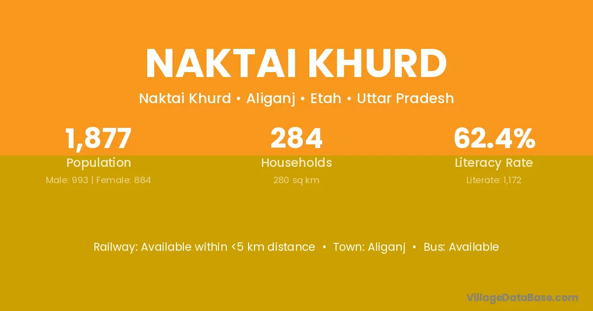 Aliganj is the nearest town to Naktai Khurd village for major economic activities