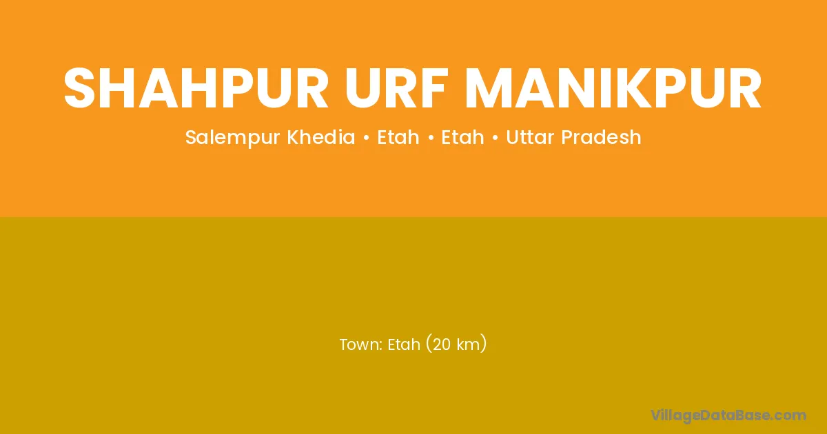 Etah (20 km) is the nearest town to Shahpur Urf Manikpur village for major economic activities and is located approximately 20 km away.