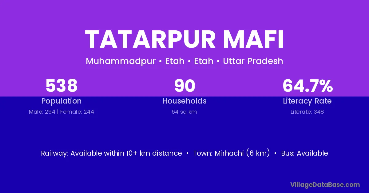 Tatarpur Mafi village has a total population of 538 people, of which 294 are males and 244 are females.