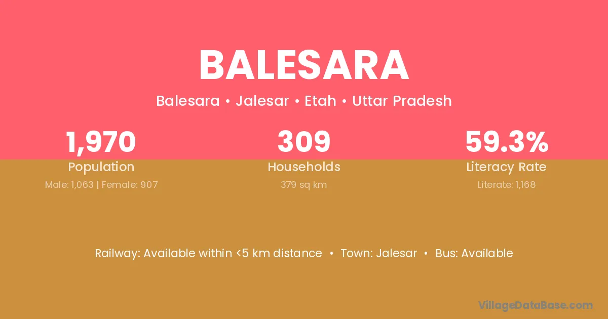 Jalesar is the nearest town to Balesara village for major economic activities