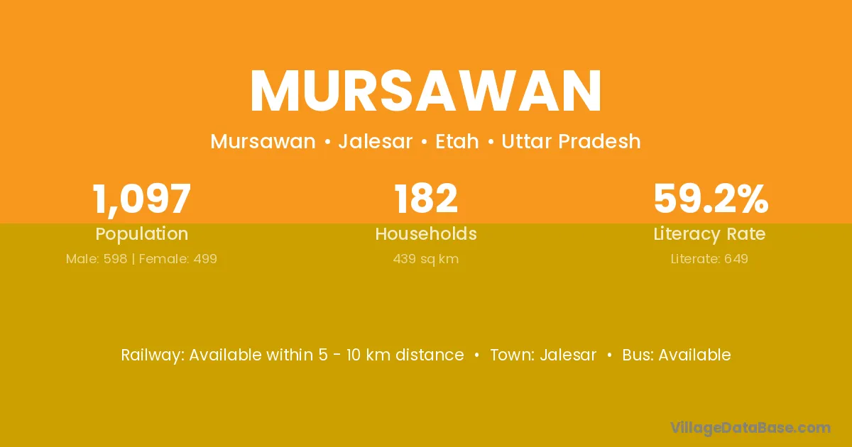 Jalesar is the nearest town to Mursawan village for major economic activities