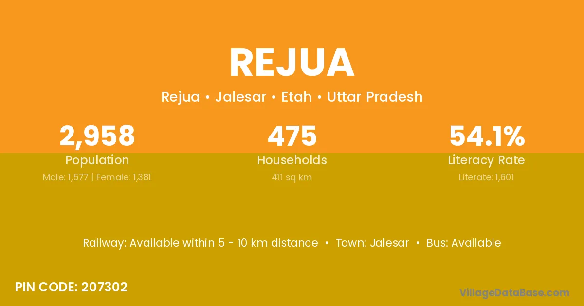 According to Census 2011 information, the village code of Rejua village is 207302.