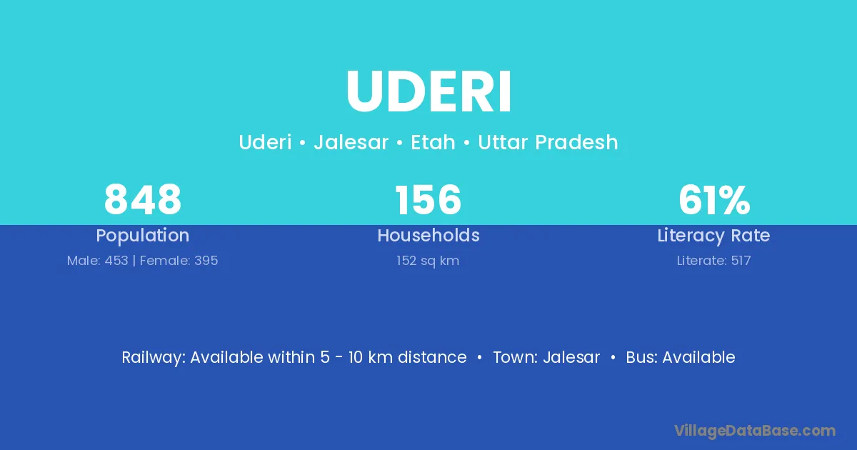 Jalesar is the nearest town to Uderi village for major economic activities