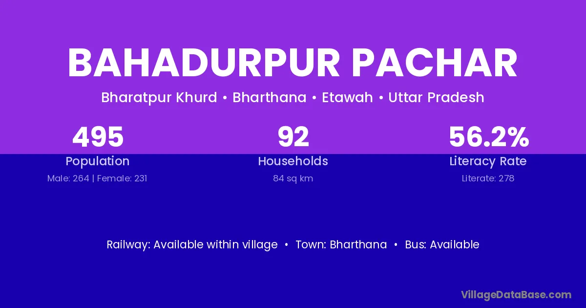 Bahadurpur Pachar village has a total population of 495 people, of which 264 are males and 231 are females.