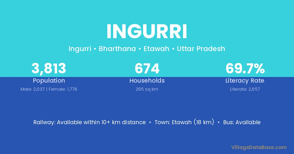 Etawah (18 km) is the nearest town to Ingurri village for major economic activities and is located approximately 18 km away.