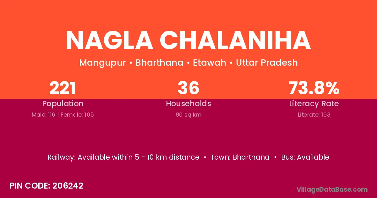 Bharthana is the nearest town to Nagla Chalaniha village for major economic activities